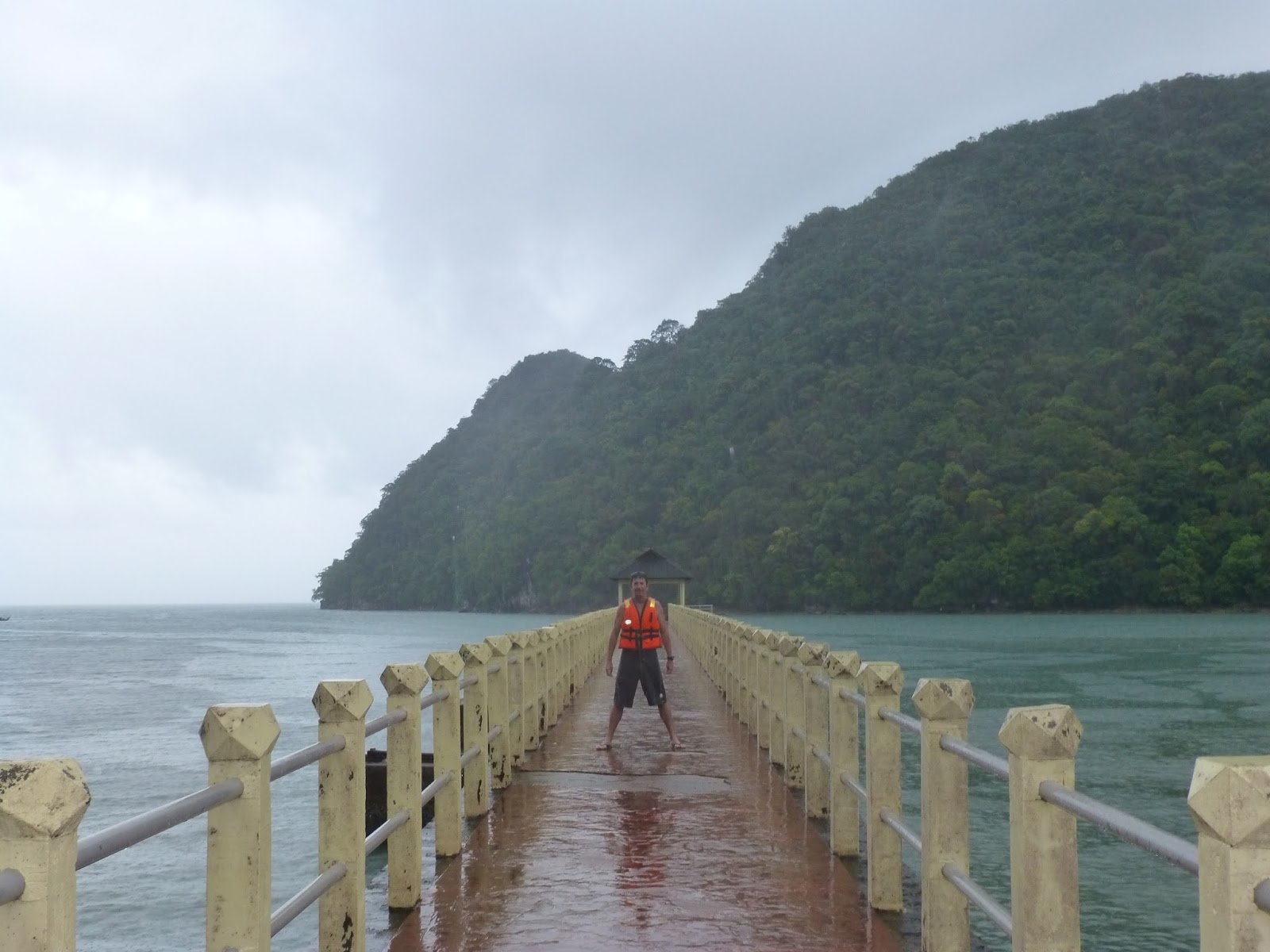 Nos llevó también a una especie de aquarium flotante, algo cutre, donde un indonesio con facha de ermitaño nos enseñó las piscinas de su interior y dimos de comer con la mano a unos peces descomunales. Estuvimos solos. Bueno, bueno, nos enseñó de todo. Fue gracioso negociar con él el precio de la entrada desde la lancha, sin bajarnos. El tiempo corría en mi contra jaja, casualidad el cielo se estaba poniendo como el carbón. Me rebajó a la mitad y justo se puso a llover como no habíamos visto en todo el viaje. Daba respeto, porque la plataforma, a unos 50 metros separada de la pared de un acantilado, se movía…. La cosa fue a mejor porque el lanchero nos llevó luego a especie de lago dentro de una isla que nos pareció acojonante, rodeados de selva y montañas, mojándonos y esperando a que apareciese un T-Rex o algo parecido. Había una leyenda de una dama embarazada que enterró allí a su bebé. Snif.